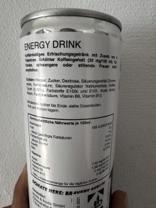 Energydrinks enthalten Koffein und sind für Kinder, Schwangere und stillende Frauen nicht empfohlen. Nicht mit Alkohol mischen. Maximale Tagesdosis: 1 Dose (250 ml). Bitte kühl und trocken lagern. Übermäßiger Konsum kann zu unerwünschten Nebenwirkungen wie Nervosität, Schlaflosigkeit oder Herzrasen führen. Verantwortungsvoll genießen.