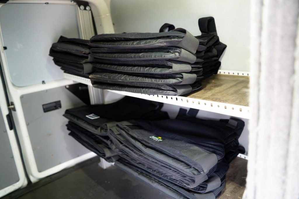 Dank unserem Partner Enno Lenze und dem Team von Berlin Story Bunker ( besucht unbedingt die dortige Ukraine Museum Ausstellung ) konnten wir 55 spezielle Schutzwesten liefern. Mit den 30 bereits vorher gelieferten sind wir nun bei 85 Schutzwesten vor Ort. Mit Doppeltem Layer schützen diese Westen vor allem vor Splitter ausgelöst durch FPV Drohnen Angriffe oder Artillerie. Im Einsatz sind die Westen bei Volunteers und Evakuierungsteams zum Eigenschutz. Helfenden helfen ist einer von Braverys Leitsätzen.