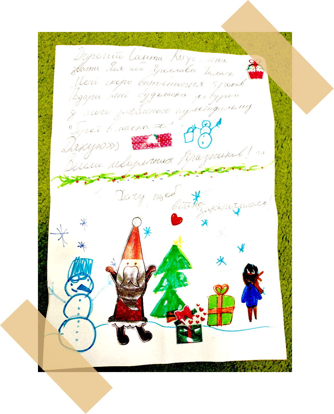 Die Kinder leiden unter der ständigen Gefahr, der Abwesenheit ihrer Freunde und der Angst um ihre Eltern. Lasst uns ihnen ein Lächeln schenken! Wir haben die Briefe an den Weihnachtsmann erhalten und wollen sie erfüllen!